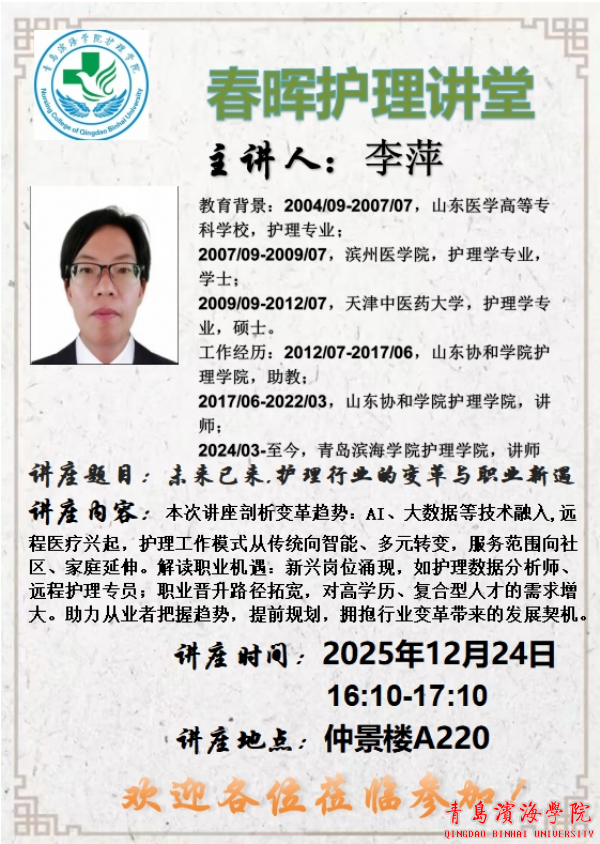 【专业建设】春晖护理讲堂讲座预告——未来已来 护理行业的变革与职业新遇