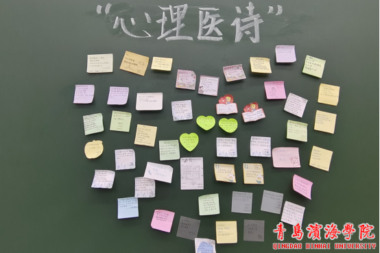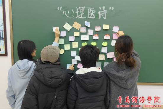 本次活动以诗意便签分享、张贴留影及互动交流为核心形式展开。在主持人的引导下,同学们将自己喜欢的治愈诗歌片段誊写在彩色便签上,有序贴满现场的“心灵诗墙”。凝视着这面承载着集体情感的诗墙,大家直观感受“心理医诗”的疗愈力量:有人为“苔花如米小,也学牡丹开”的坚韧轻声赞叹,还有人对着某句曾伴自己走出低谷的诗句默默点头。在这样的情感共鸣中,同学们逐步树立“以诗抒怀,疗愈心灵”的理念,运用诗歌关注心理健康的意识得到显著提升。大家与诗墙留影纪念,并分享选择某句诗的缘由及感悟,真挚的表达让活动氛围格外温暖。