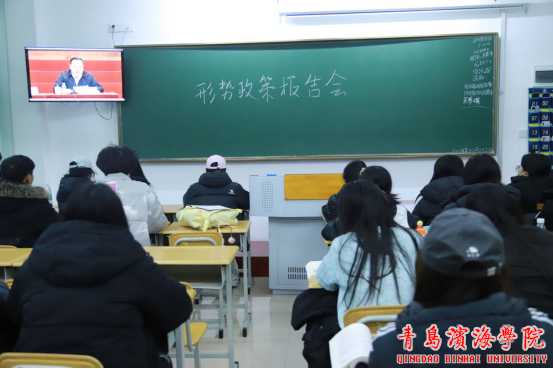为引导学生精准把握时代形势、主动践行青年使命,2025年12月23日下午16:10,护理学院在仲景楼组织全体同学集中收看“形势与政策”专题报告会转播。此次报告会由青岛滨海学院党委书记车滨主讲,全体护理学子参加。