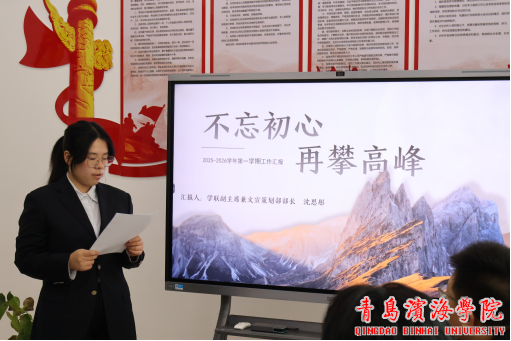 报告会伊始,学联主席及各部门负责人依次上台,以PPT形式作述职汇报。汇报围绕工作回顾、问题反思、未来规划三大维度展开,全面复盘各项工作开展情况与丰硕成果,详细介绍了校园文化艺术节、元旦晚会、“一二·九”大合唱等系列品牌活动的成功举办成效。同时,各负责人直面工作短板、不回避问题不足,结合工作实际深入剖析根源,针对性提出改进举措,并明确了下一阶段的工作思路与具体计划。各负责人述职完毕后,学生干事赵玉栋对学联整体工作进行精准点评,充分肯定学联过去一年的辛勤付出与亮眼成绩,同时为学联后续发展提出切实可行的宝贵建议。本次报告会在赵玉栋老师的殷切勉励中圆满落幕。